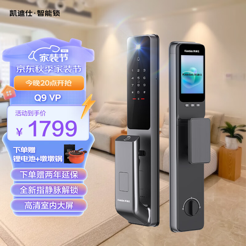 凯迪仕(kaadas)指静脉智能锁指纹锁 可视猫眼大屏智能门锁密码锁 Q9 VP价格:1899.00元!