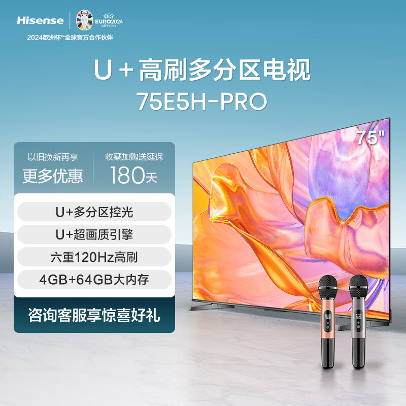 海信电视75E5H-PRO+ Vidda 麦克风 VM7G-T套装 75英寸 多分区控光 智慧屏 液晶平板电视机价格:4448.00元!