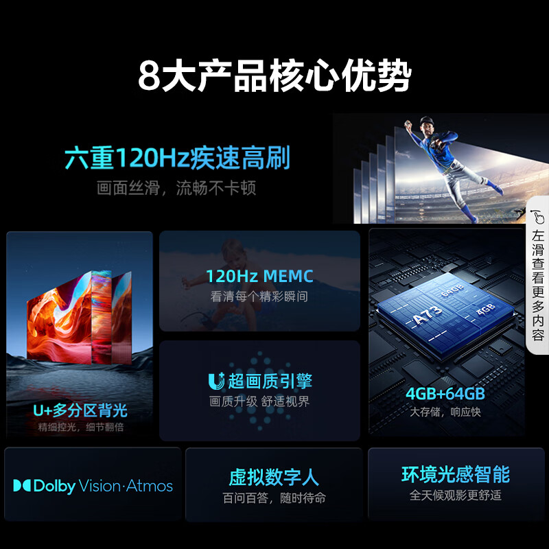 3、电视很好,对比了好多款,这款亮度画质都更好,快递速度好评。
