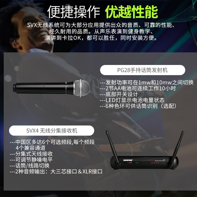 SHURE舒尔 SVX24/PG28无线话筒套装 直播舞台演出KTV会议演讲主持麦克风 单通道手持一拖一价格:1788.00元!