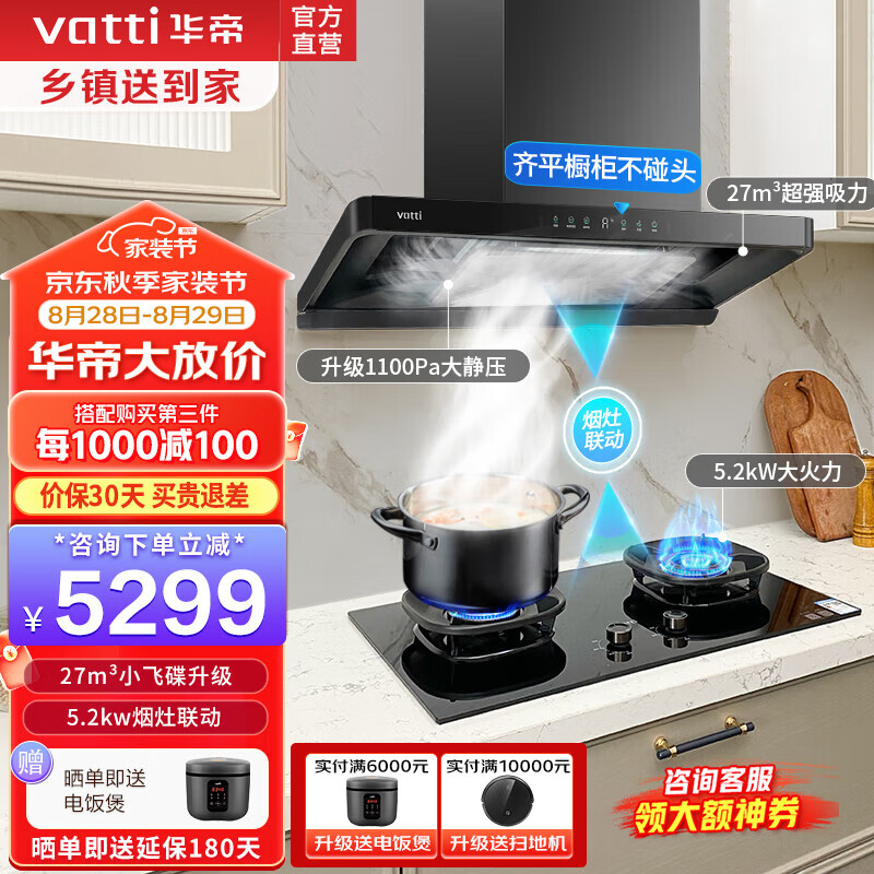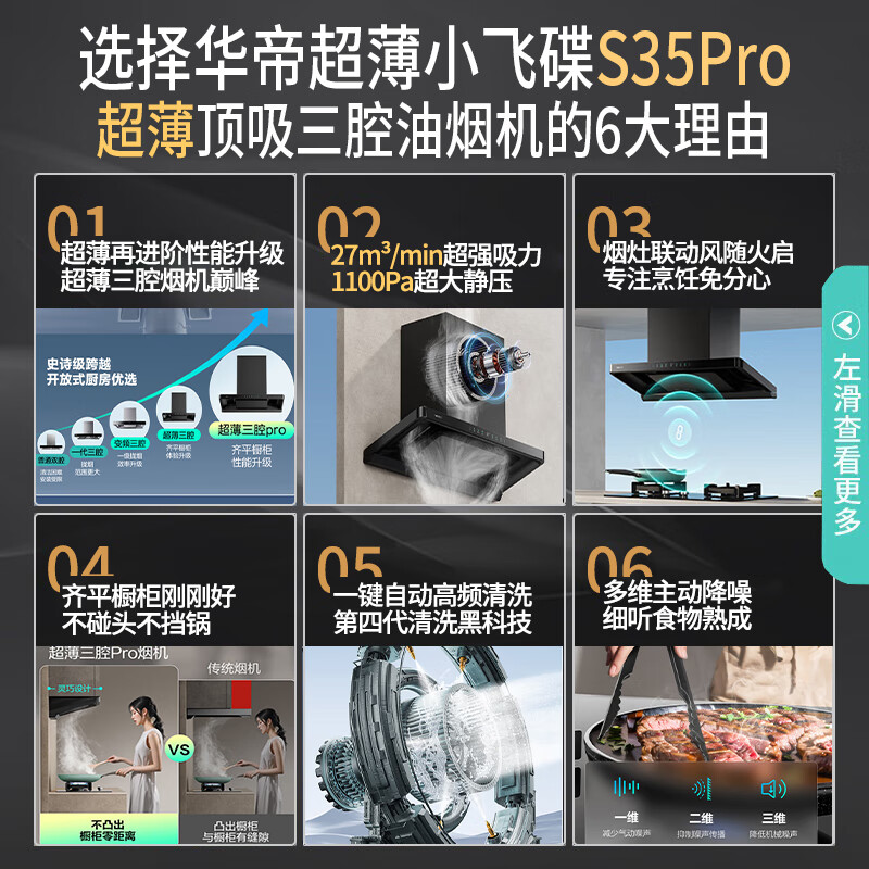 华帝(VATTI)【超级新品】小飞碟欧式超薄抽油烟机i11S35官方三腔S35顶吸顶侧一体26风量变频烟灶联动自清洗 S35P+309L27风量+5.2KW丨烟灶联动 天然气价格:5599.00元!