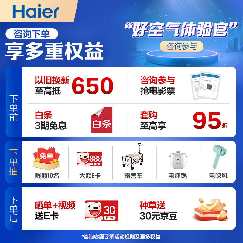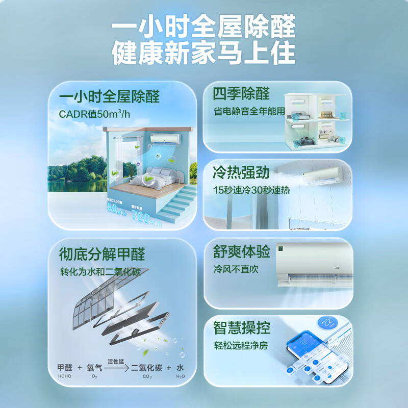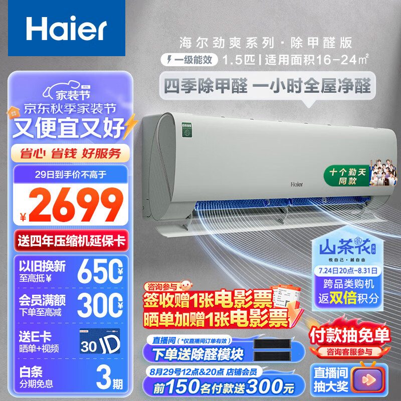 海尔(Haier)【山茶花系列】 劲爽除醛版1.5匹新一级能效省电 冷暖壁挂式除甲醛空调挂机 KFR-35GW/C2LGA81U1价格:2699.00元!