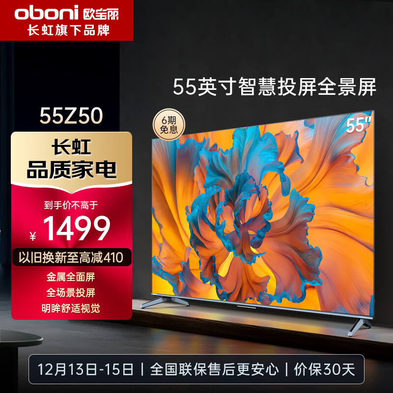 长虹欧宝丽55Z50 55英寸手机投屏在线观影4K超高清平板液晶LED电视机价格:1499.00元!