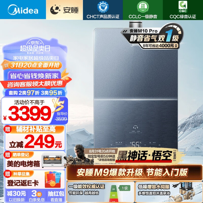 美的(Midea)安睡M9升级超一级能效 16升燃气热水器一级静音2.0低噪水伺服 密闭稳燃舱抗12级风JSLQ27-M10 Pro价格:3399.00元!