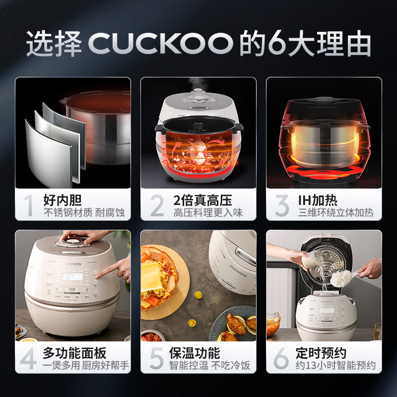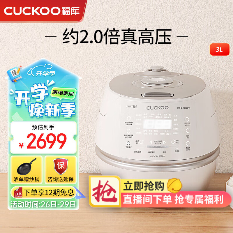 福库(CUCKOO)电饭煲 家用韩国原装进口电饭锅IH电磁加热多功能预约定时智能语音高自动洗涤不粘锅 包装升级DHP (1-4人用) 3L价格:3599.00元!