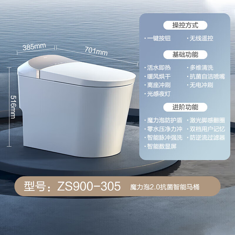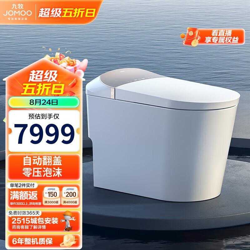 九牧(JOMOO)智能马桶一体机带水箱泡沫盾自动翻盖智能坐便器ZS900-305坑距价格:9599.00元!