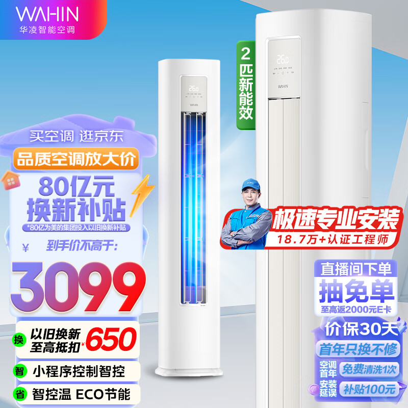 华凌空调2匹柜机 超省电 新三级能效变频冷暖 省电立式客厅卧室空调柜机 二代升级款KFR-51LW/N8HA3II价格:3099.00元!