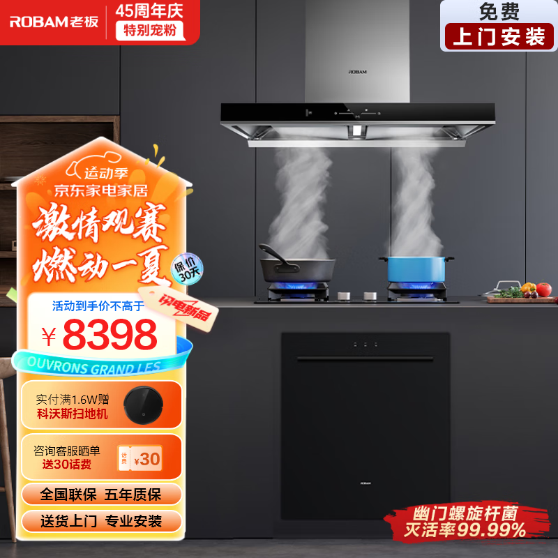 老板(Robam)双子星D1S变频22大风量抽油烟机灶具13套大容量洗碗机厨房多件套60D1S+57B2DT+WB793D价格:8398.00元!