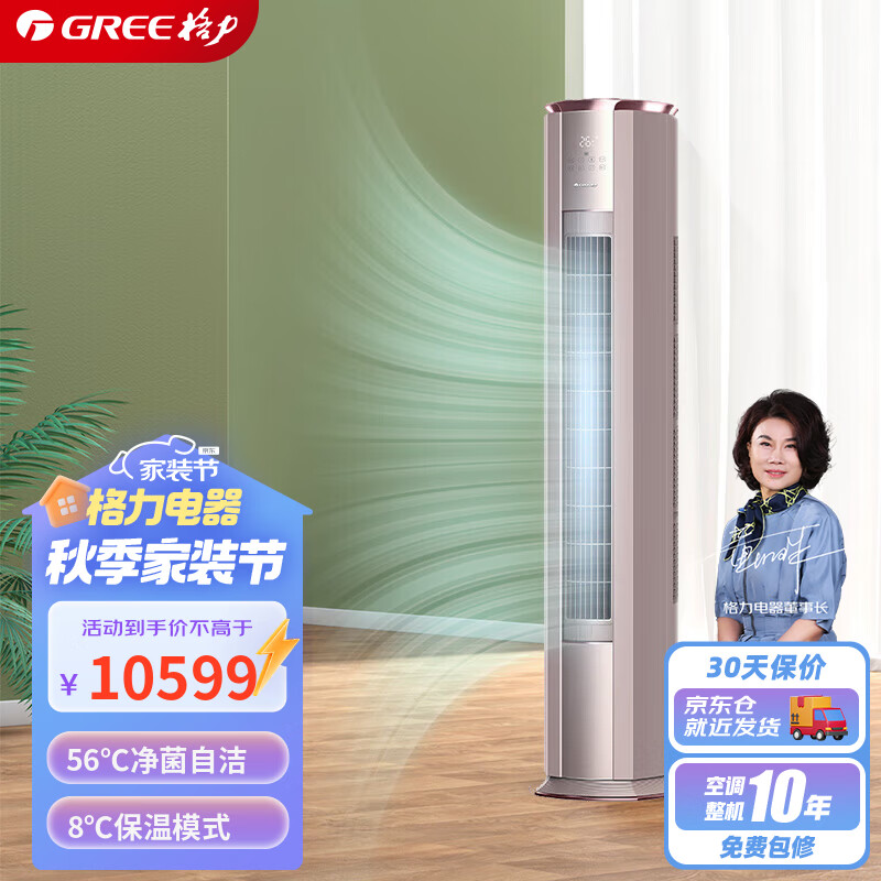 格力(GREE) 3匹 京御 新一级能效 变频冷暖 离子净化 净菌自洁 立柜式空调柜机 KFR-72LW/(72587)FNhAb-B1价格:10599.00元!