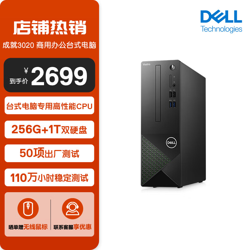 戴尔(Dell)成就3020 新款 台式电脑主机 高性能整机 台式机 商用办公电脑 教育学习 图形设计(13代i3-13100 8G 256GSSD+1TB三年上门)单主机价格:2699.00元!