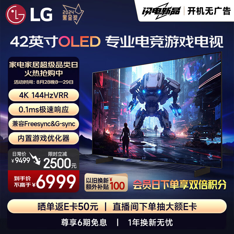 LGC4系列 42英寸OLED42C4PCA 4K超高清屏专业旗舰电竞游戏电视 120Hz高刷 适配PS5价格:6999.00元!