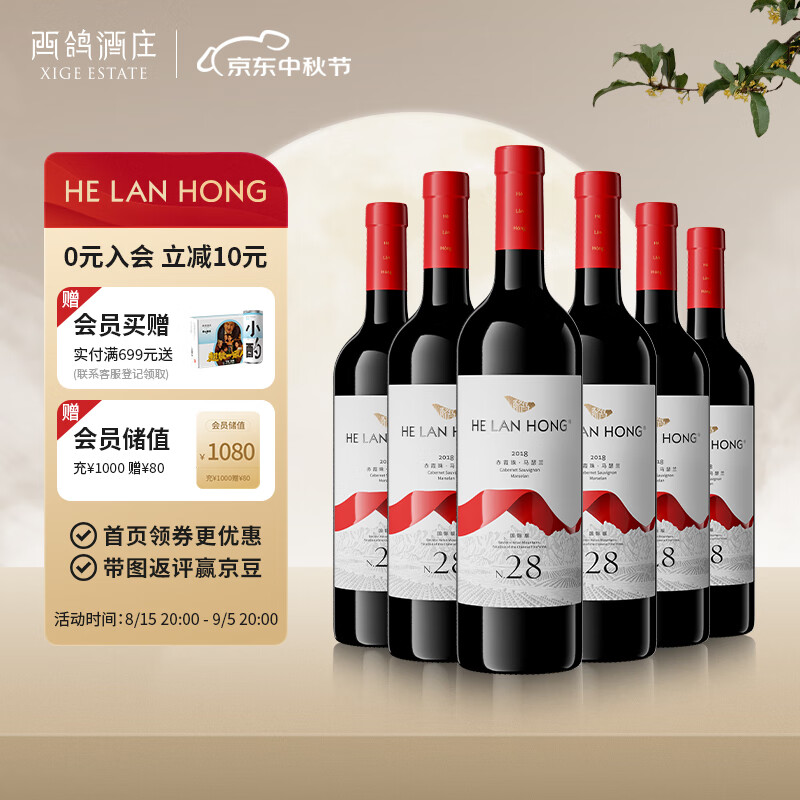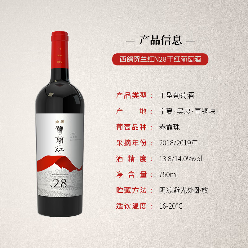 贺兰红西鸽N28赤霞珠干红葡萄酒750ml*6瓶整箱装 宁夏贺兰山国产红酒价格:799.00元!