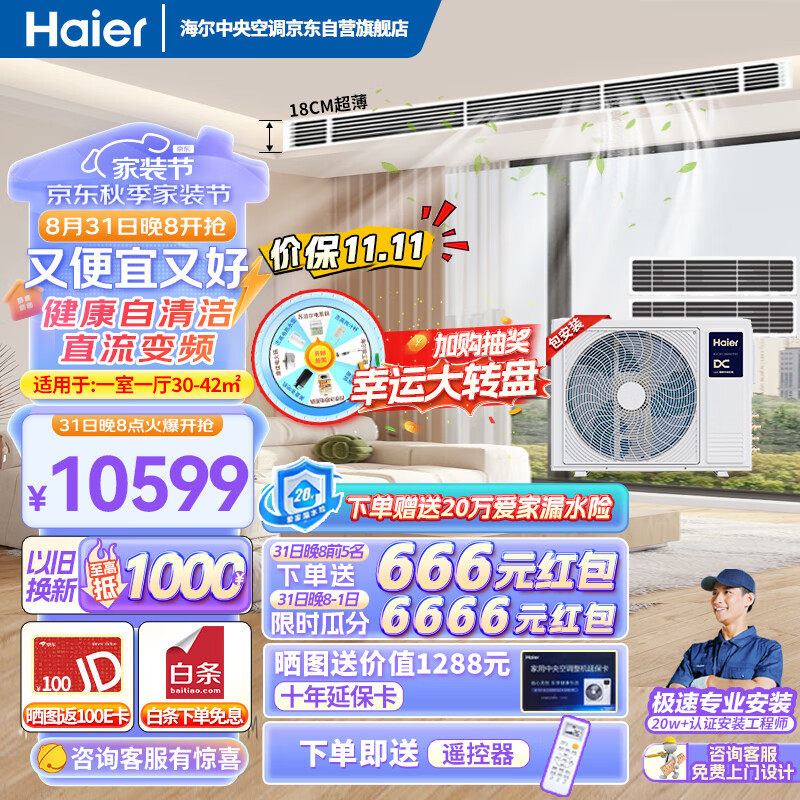 海尔(Haier)中央空调一拖二风管机3匹风管机直流变频嵌入式空调乐家RFC80DXA价格:10599.00元!