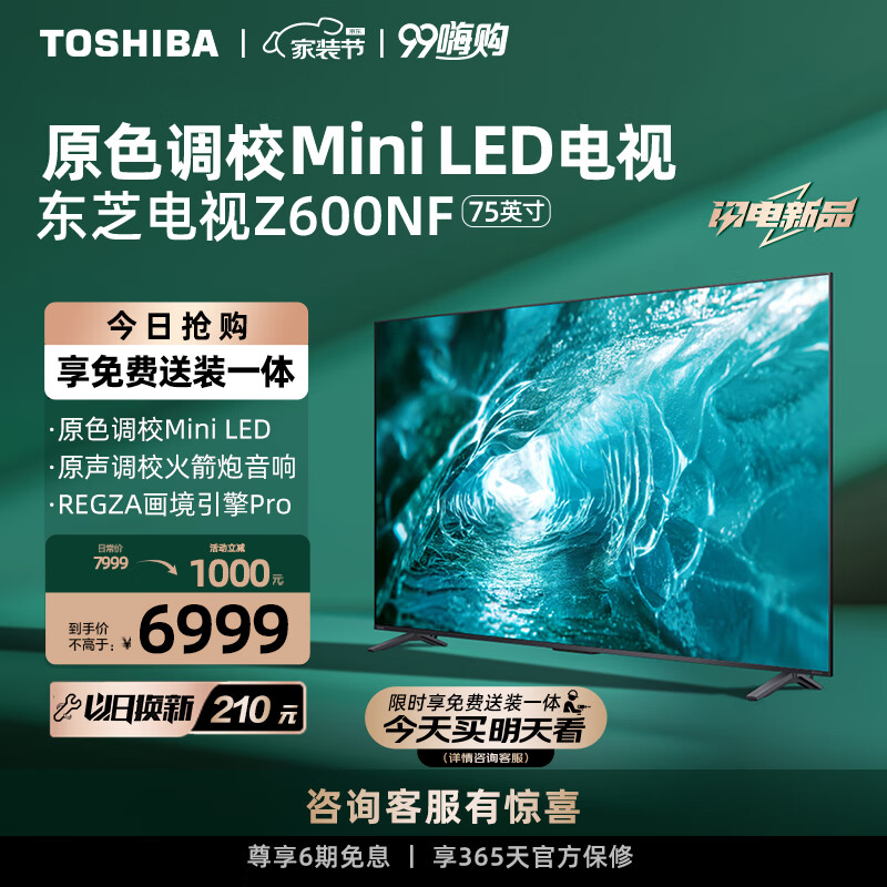 东芝电视75Z600NF 75英寸原色调校Mini LED 火箭炮音响 4K144Hz超清液晶智能平板游戏电视机黑神话悟空价格:6999.00元!