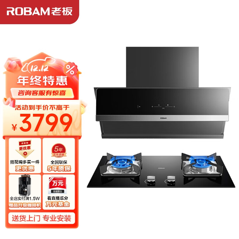 老板(Robam)抽油烟机家用燃气灶变频烟灶套装22立方侧吸大吸力吸油烟机灶具28D02S+30B6D天然气价格:3799.00元!