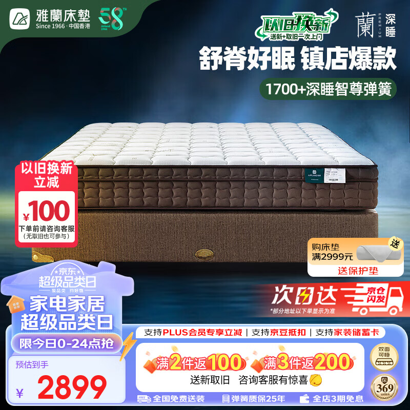 雅兰(AIRLAND)深睡系列乳胶床垫透气软硬适中独袋弹簧床垫深睡智尊版1.8*2米价格:4899.00元!