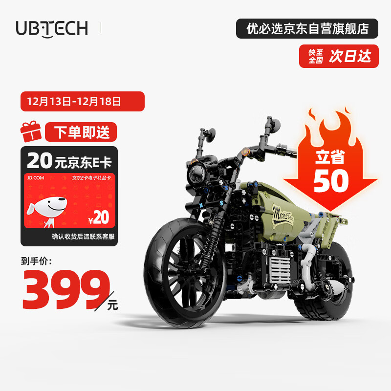 优必选智能编程积木机器人玩具 拼插式经典复古仿真飙风摩托车 男女孩生日科技收藏摆件礼物价格:449.00元!