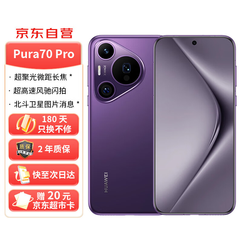 HUAWEIHUAWEI Pura 70 Pro 罗兰紫 12GB+512GB 超高速风驰闪拍 华为P70智能手机价格:5909.00元!