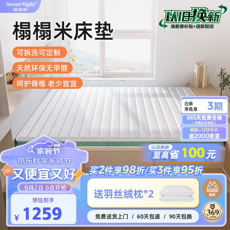 Sweetnight榻榻米床垫天然椰棕8cm床垫子 可定制拆洗 甜秘密丹左B款 1.8x2米价格:1259.00元!
