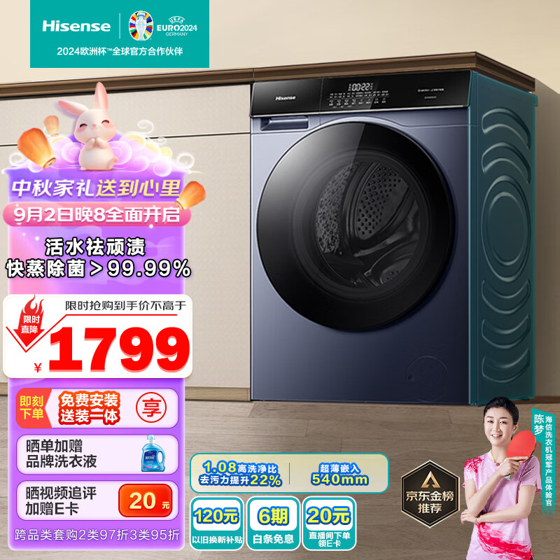 海信(Hisense)滚筒洗衣机全自动 10公斤洗烘一体大容量家用超薄 活水洗 快蒸消毒高洗净比HD100DSE12F以旧换新价格:1799.00元!