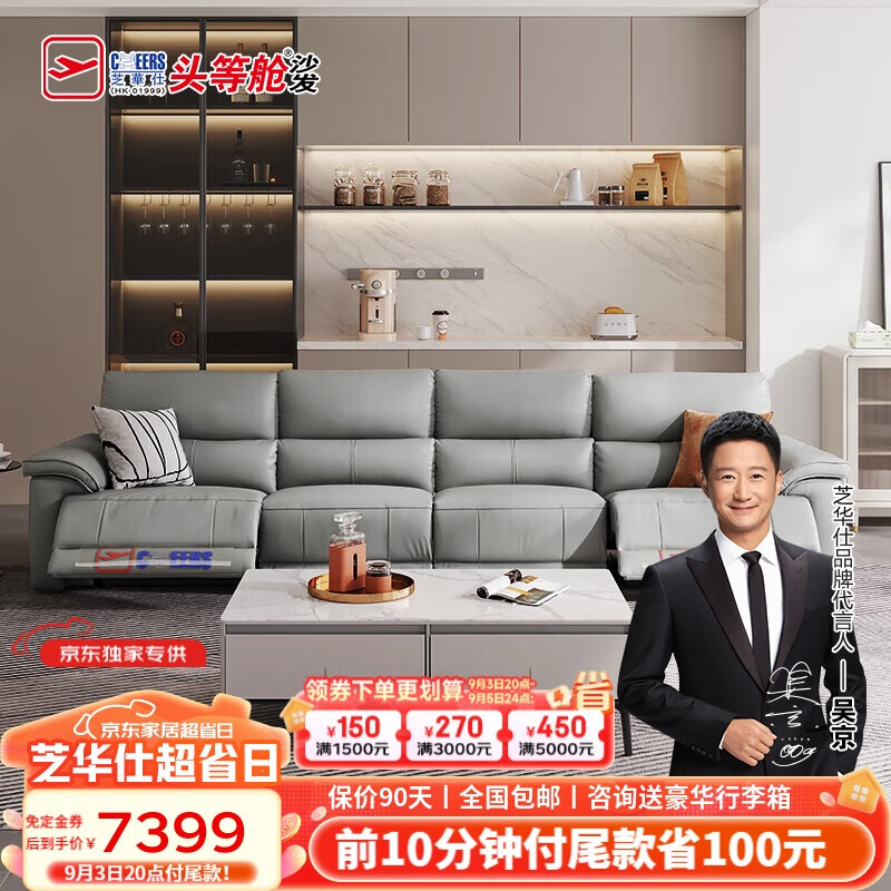芝华仕(CHEERS)头等舱零靠墙真皮沙发功能家用芝华士客厅家具30196 灰四价格:7949.00元!