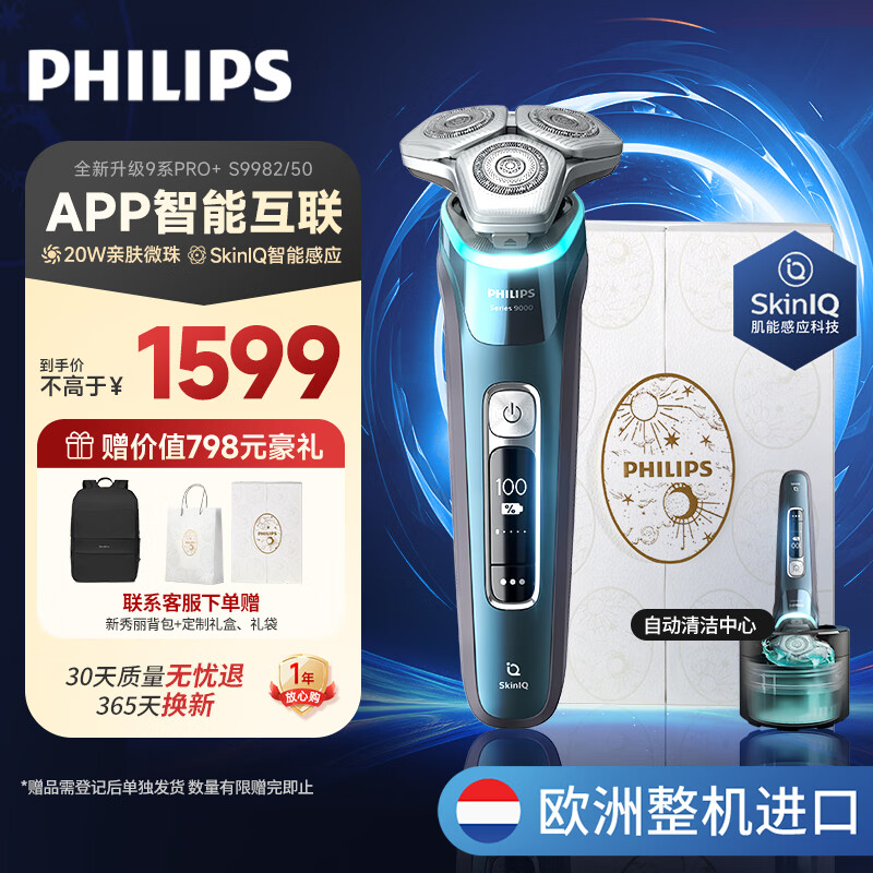 飞利浦(PHILIPS)男士电动剃须刀蜂巢9系Pro SkinIQ科技【整机荷兰进口】【送老公送长辈 生日礼物】S9982价格:1699.00元!