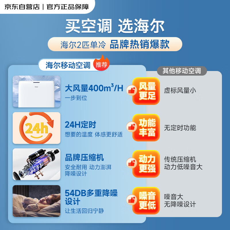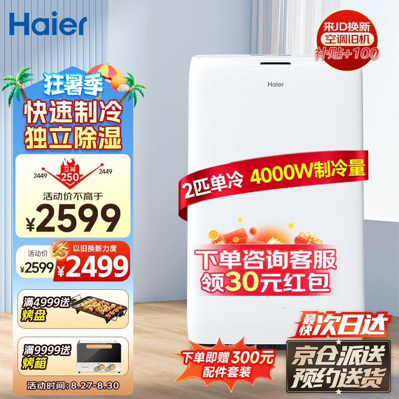 海尔(Haier )2匹单冷移动空调家用客厅出租屋厨房空调除湿便携式一体机智能控制立式空调KY-40YDB1U1价格:2599.00元!