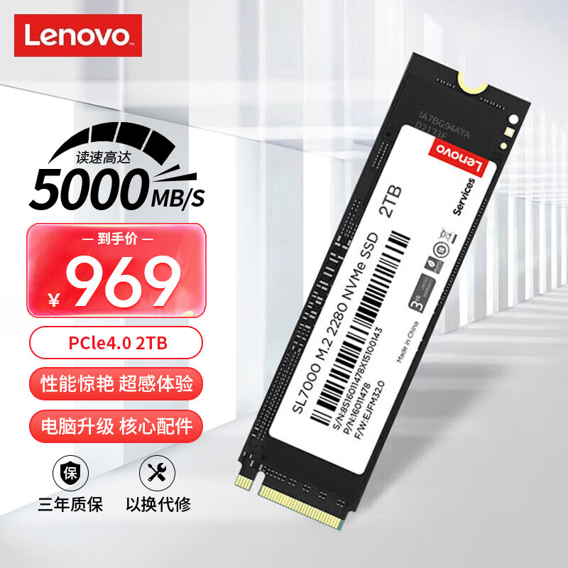 联想(Lenovo) 2TB SSD固态硬盘m.2接口(NVMe协议)pcie4.0 SL7000系列 读速高达5000MB/s价格:969.00元!