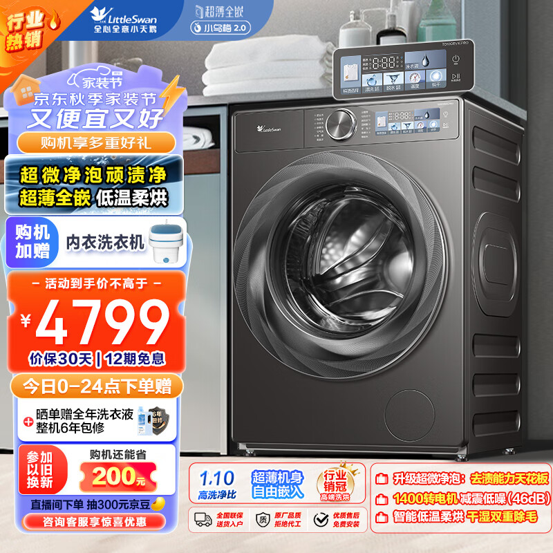 小天鹅(LittleSwan)滚筒洗衣机全自动家用 带烘干洗烘一体【小乌梅2.0 TD100RVICPRO】超薄全嵌 10公斤 以旧换新价格:4799.00元!