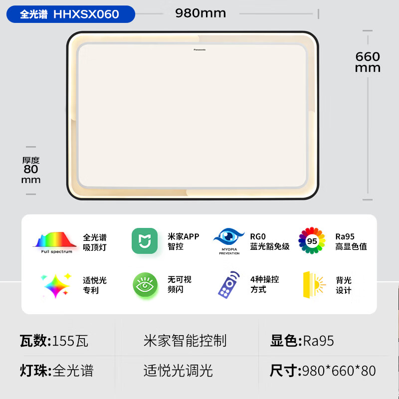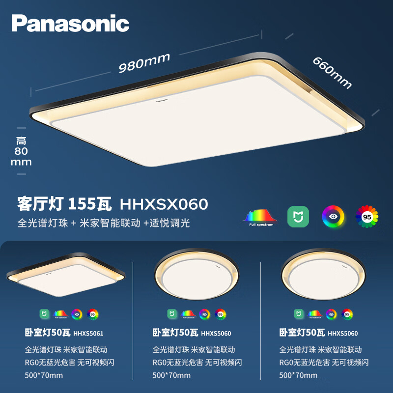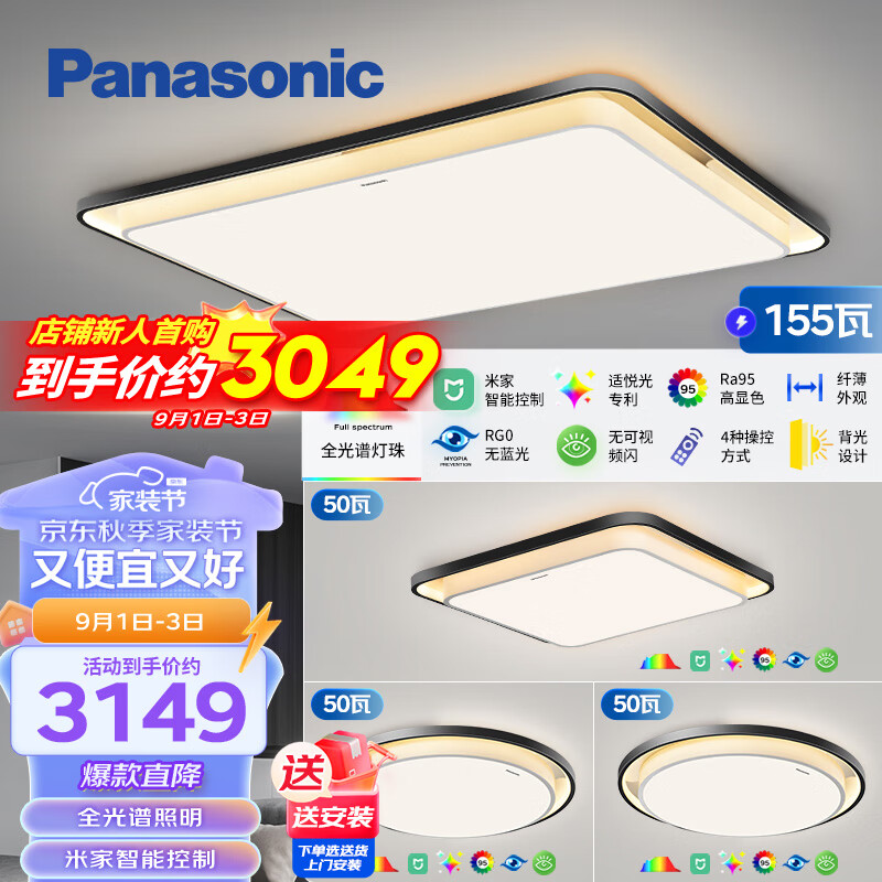 松下(Panasonic)吸顶灯全光谱护眼全屋米家智能led现代简约灯具泽巡三室一厅套装价格:3149.00元!