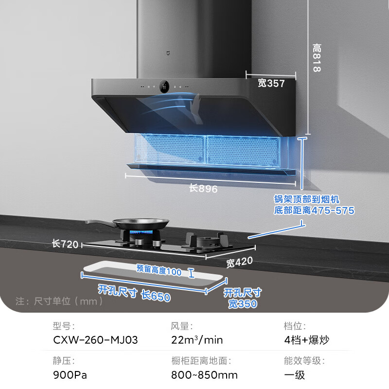 此款米家CXW-120-MJ03,使用感受还不错的,外形外观:外观看起来非常简洁大方,安装师傅非常有耐心,不过新款机子还是要多熟悉,排烟效果:现场测试风力不错,期待后续使用情况!
