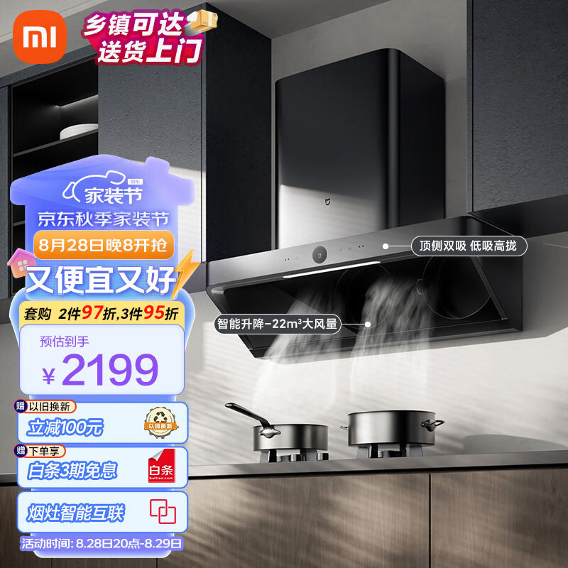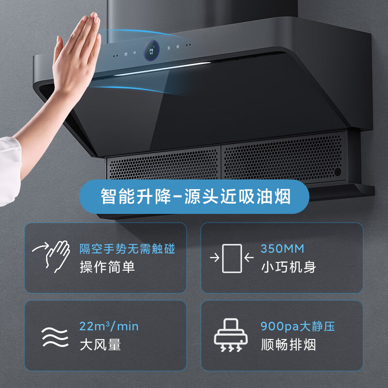 米家小米智能变频升降抽油烟机S1 22大吸力小尺寸顶侧双吸油烟机平嵌橱柜智能烟感 烟灶联动 MJ03价格:2199.00元!