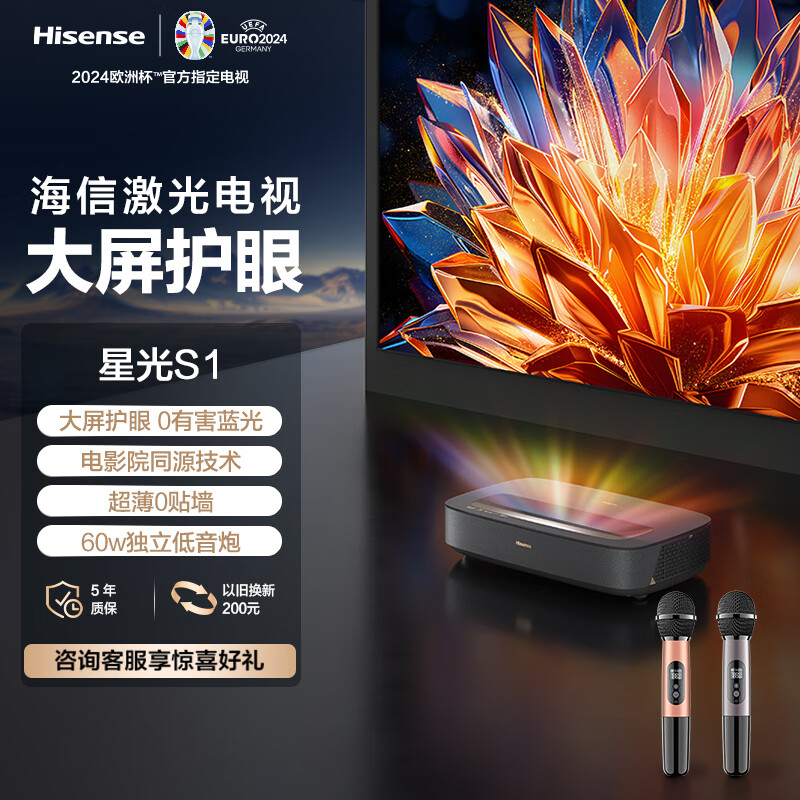 海信激光电视 星光S1+Vidda麦克风VM7G-T套装 80英寸三色激光家庭影院 电影院同源技术菲涅尔巨幕价格:9648.00元!