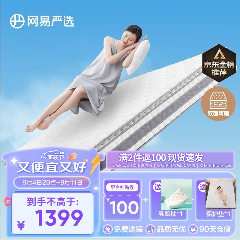 网易严选AB面弹簧床垫1.5*2米 乳胶床垫席梦思 奢睡款 抑菌防螨 独袋弹簧价格:2199.00元!