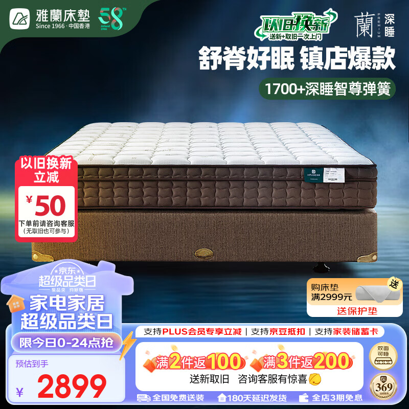 雅兰(AIRLAND)深睡系列乳胶床垫透气软硬适中独袋弹簧床垫深睡智尊版1.8*2米价格:4899.00元!