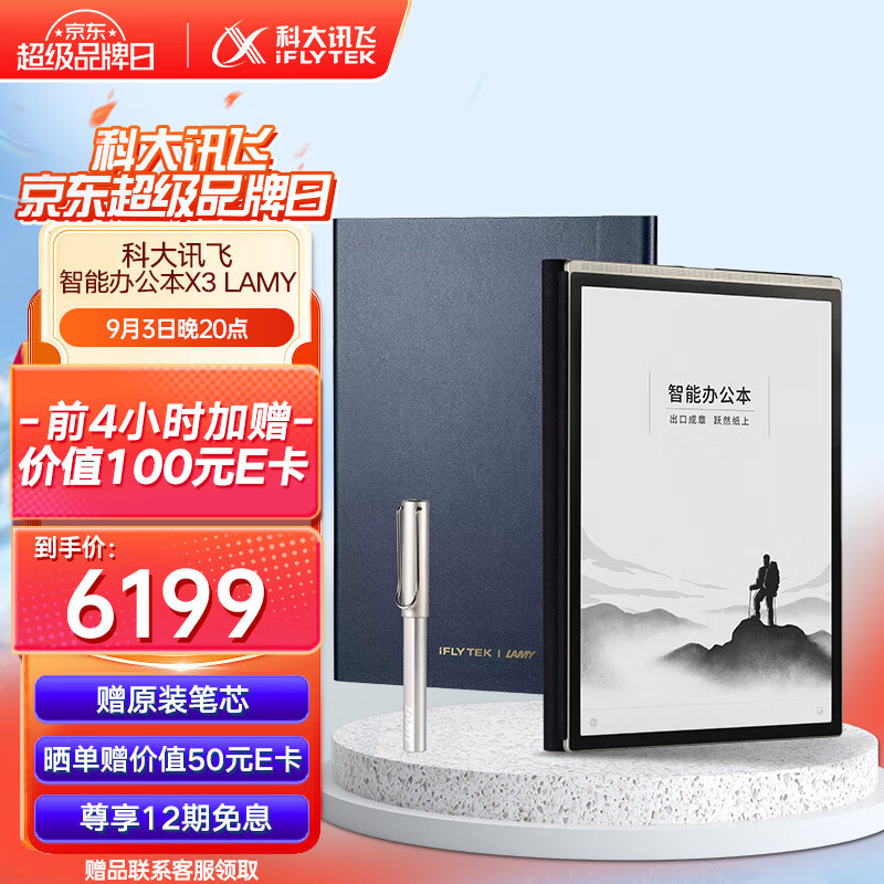 科大讯飞智能办公本X3 LAMY联名款 10.65英寸搭载讯飞星火大模型 语音转写电子书阅读器 墨水屏电纸书价格:6199.00元!