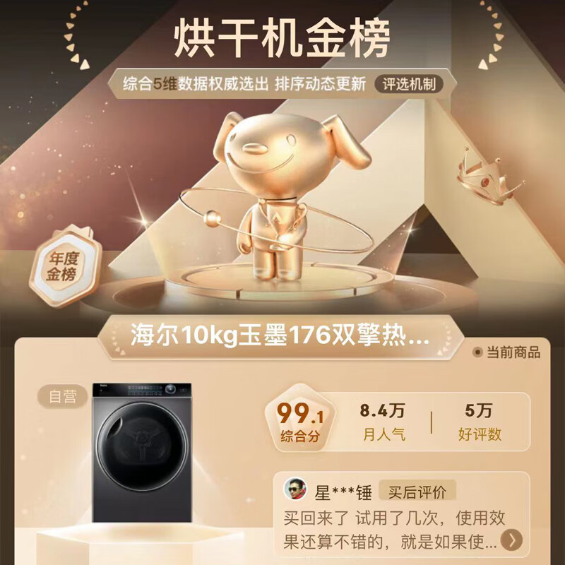 海尔(Haier)纤美176烘干机家用 10公斤双擎热泵干衣机 超声波雾化空气洗 除菌净螨 HBNS100-FQ176U1 以旧换新价格:4199.00元!
