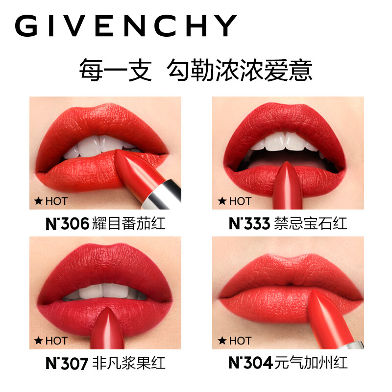 4、口红很不错,有一股淡淡的香味,然后纪梵希这个品牌的话也是很长久了,还是很信赖他的口红的质感是不错的,然后就颜色也是很明艳的正红色。然后上唇的话效果是很好的,哑光雾面的。效果很不错。出去约会呀,职场啊都是可以用得到的,这只口红的颜色还是很不错的,日常也是使用率蛮高的,还送了香水,味道很好闻,下次要入手别的色号,很喜欢这个口红壳
