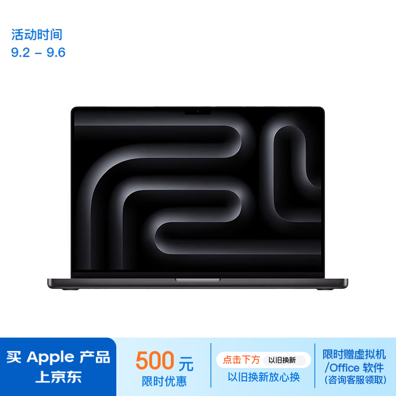Apple/苹果AI笔记本/2023MacBookPro14英寸 M3 Pro(12+18核)18G 1TB深空黑色 笔记本电脑MRX43CH/A价格:19999.00元!