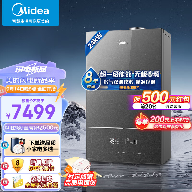 美的(Midea)超一级能效玻璃屏无极变频水气双调冷凝燃气壁挂炉天然气供暖采暖锅炉以旧换新LL1PBD24-HNM1价格:7999.00元!