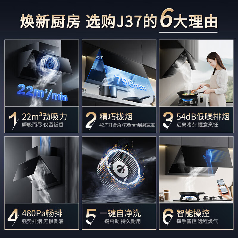 给大家分享下!实实在在的说这款美的CXW-280-J37外观我比较的喜欢,质量特别的好,东西不错,分量很足很重,师傅装好以后测试了一下,风力很大,21的风力够用了,很值得购买,可以挥手开关,还可以自洁,产品不错