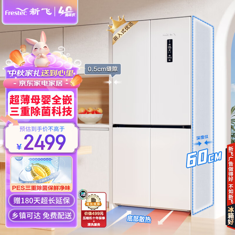 新飞(Frestec)超薄嵌入式十字对开门双直流变频母婴冰箱三重除菌一级能效平嵌风冷无霜BCD-430WKQ8AT价格:2499.00元!