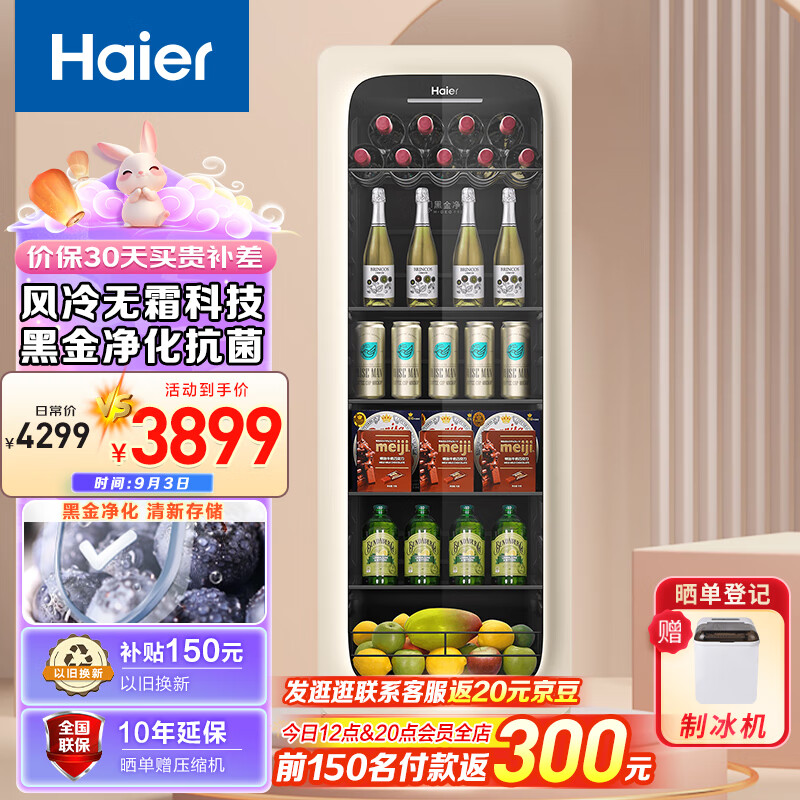 海尔200升一级能效家用客厅办公室冷藏柜暖藏冰吧元气吧茶叶饮料水果蔬菜小冰箱LC-200WLH9EY1以旧换新价格:3899.00元!