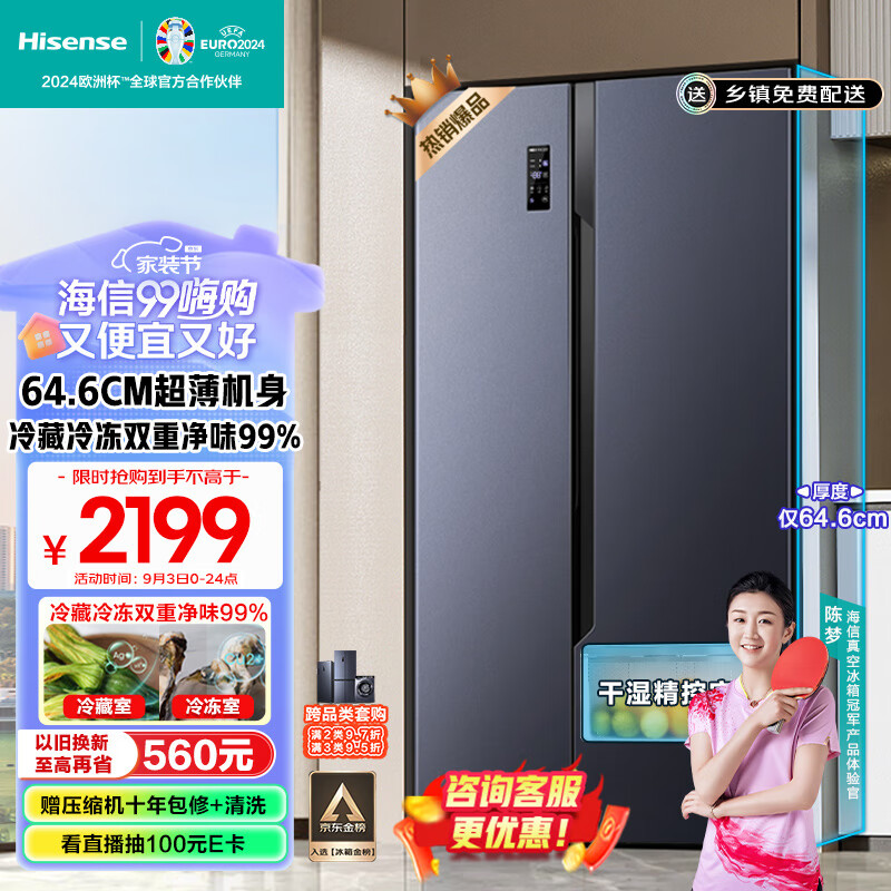 海信(Hisense)电冰箱双开门 家用对开门大容量超薄536升一级能效风冷无霜BCD-536WFK1DPUT价格:2399.00元!
