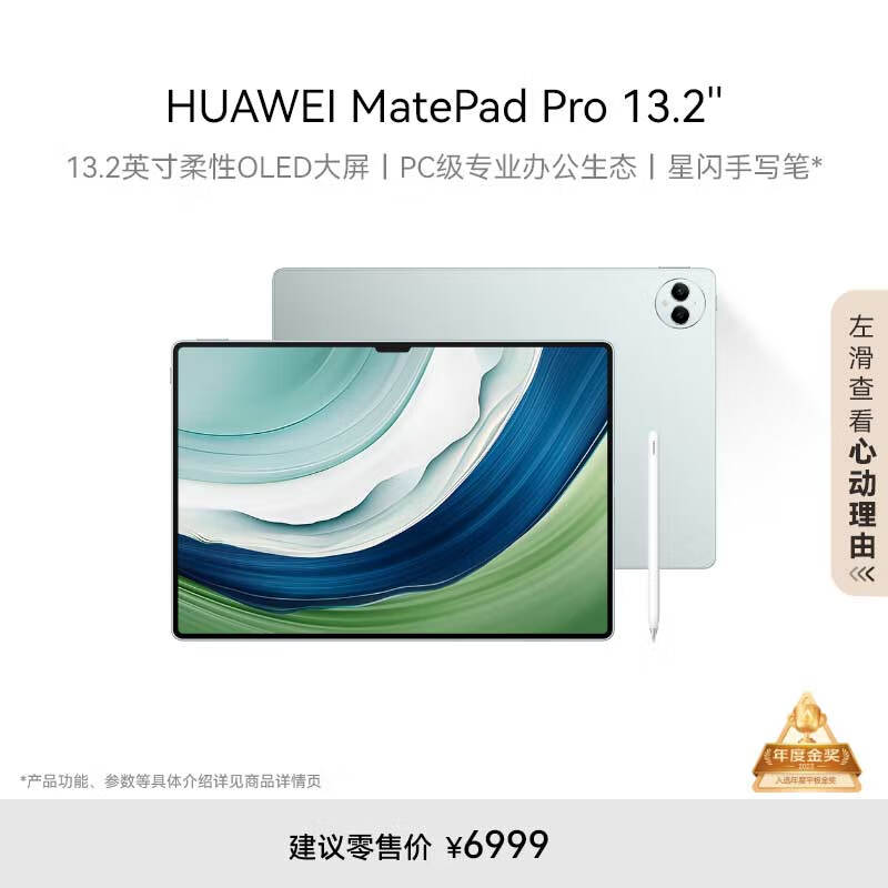 HUAWEI MatePad Pro 13.2英寸 华为平板电脑144Hz OLED柔性护眼屏星闪连接办公创作16+1TB WiFi 雅川青价格:6699.00元!
