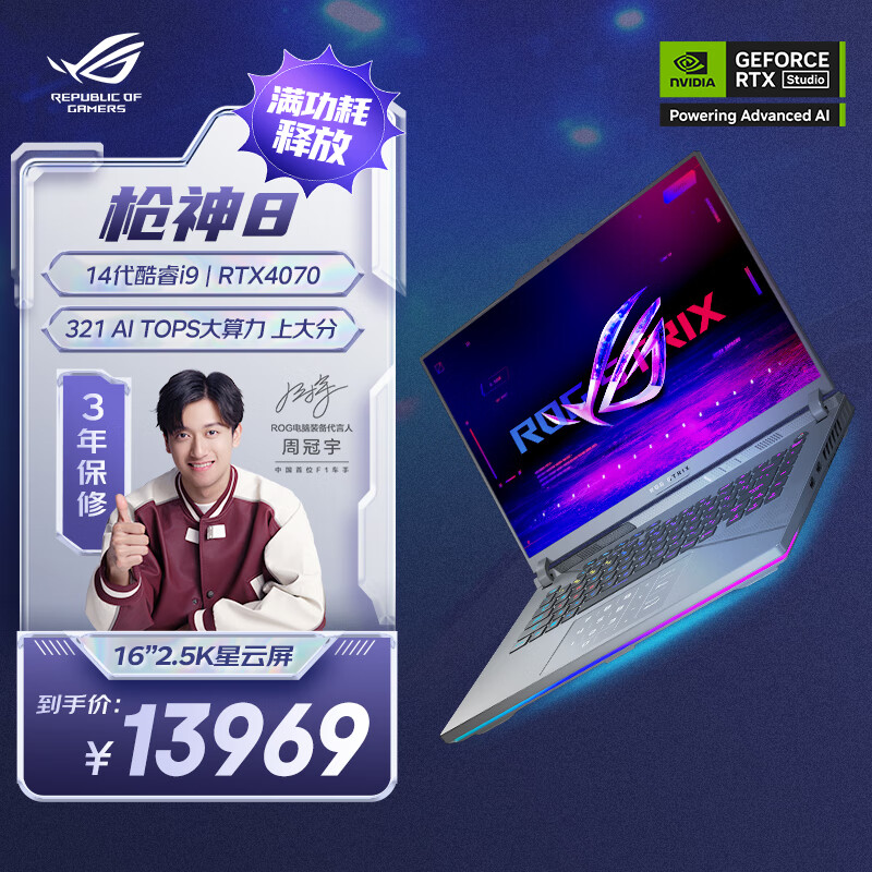 ROG枪神8 16英寸 14代酷睿i9 星云屏游戏本笔记本电脑(i9-14900HX 液金导热 16G 1T RTX4070 240Hz)价格:13969.00元!