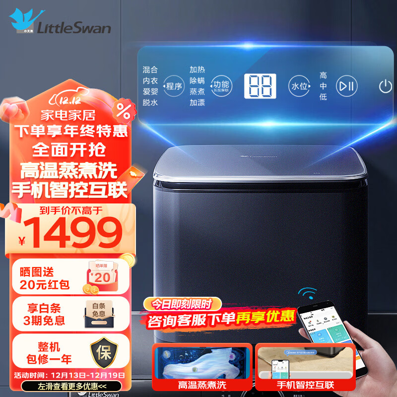 小天鹅(LittleSwan)内衣裤迷你洗衣机 小型母婴儿袜子高温除螨除菌1公斤波轮全自动WiFi版星际蓝TNB10-01WL价格:1499.00元!