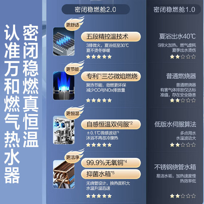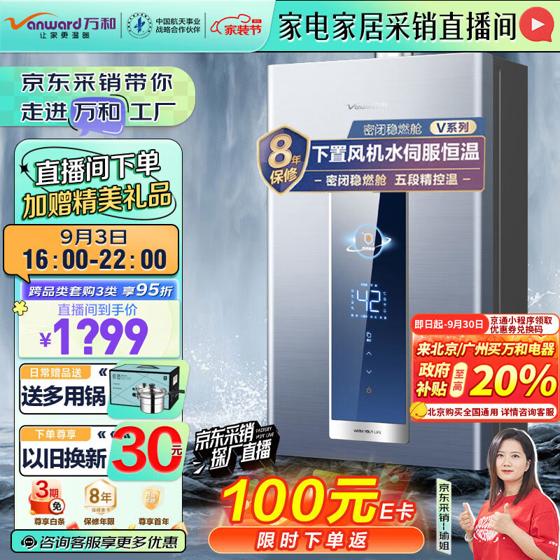 万和(Vanward)燃气热水器16升天然气密闭稳燃舱双伺服恒温进口下置风机五分段精控温三芯微焰燃烧V5D16 以旧换新价格:1799.00元!