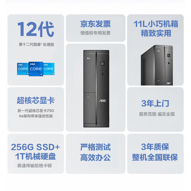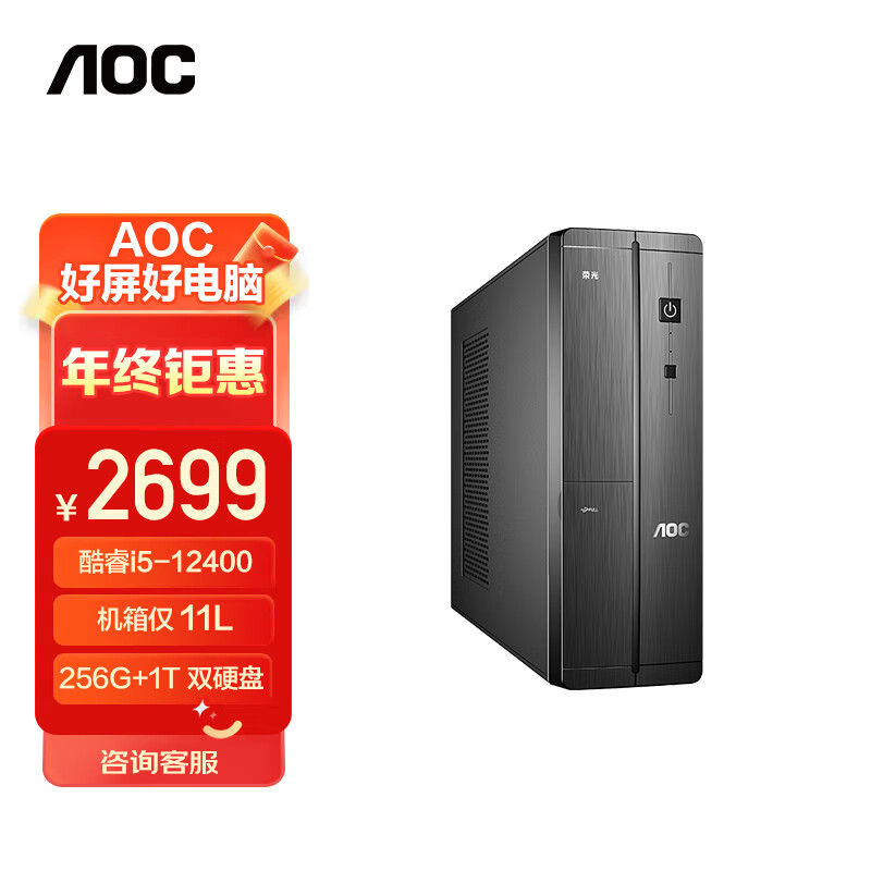 AOC 荣光910 高性能商用办公台式机电脑主机(12代i5-12400 16G 256G+1T 双硬盘 WIFI 商务键鼠 三年上门)价格:2699.00元!