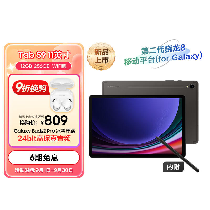 三星(SAMSUNG)平板电脑2023款Tab S9 11英寸 12G+256G WIFI 骁龙8Gen2 顺滑全视屏 内附Spen 云影灰价格:5908.00元!
